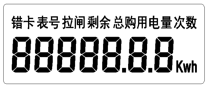 斷電值:當用戶表內剩余電量為斷電值(默認為0度)時,電能表拉閘斷電,屏幕閃爍,需要用電卡購買新的電量并再次插卡后才能繼續供電。